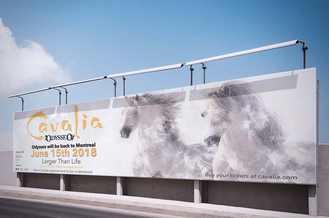 As a personal project, the goal was to create two huge poster for Odysseo's new show - Cavalia. Since this show is related to horses, I decided to design a horse that looks like it’s appearing from a dream.